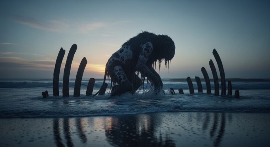 Imagine a twilight shore where the horizon bleeds into oblivion, waves lapping like forgotten whispers against the ribs of an ancient world. There, in the cradle of some primordial dusk, a creature stirs—not quite beast, not yet divine—its silhouette half-drowned in the surf, fur sloughing away like shed illusions. This is no mere fable spun from fever dreams; it’s the ghost haunting the edges of our story, the one that dares ask | What if the cradle of humanity wasn’t sun-baked savannahs, but the cool, insistent embrace of forgotten waters?